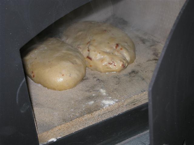 Das weiße Brot kam in das Gewölbefach, das Tomatenbrot rechts daneben.
