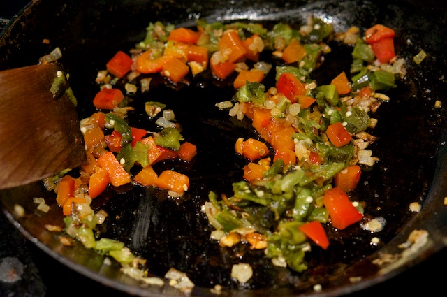 Chilis, Zwiebeln und Knoblauch brate ich in etwas Butter in einer Pfanne an. Die sich dabei entwickelnden Aromen sind unvergleichlich.