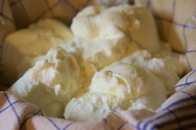 Die Bällchen benötigen etwas Vorbereitungszeit, man sollte sie mindestens einen Tag im Voraus zubereiten. Zuerst mal muss der Joghurt sehr gut abtropfen, damit man daraus überhaupt Bällchen formen kann. Ich gebe ihn in ein Sieb, das ich mit einem sauberen Küchenhandtuch ausgelegt habe.